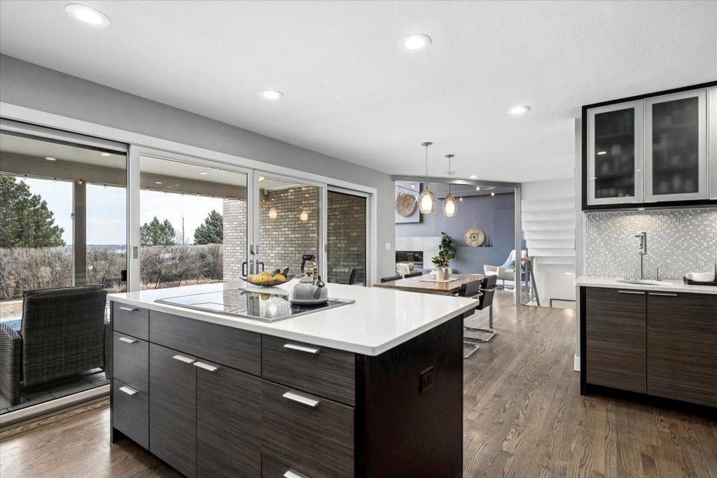 Stunning, extensively updated home on large lot with SPECTACULAR RESERVOIR VIEWS, in coveted Hills West community. Award winning Cherry Creek Schools. Beautiful finishes & attention to smallest detail have gone into creating this exquisite home. Bright, open floor plan is ideal for entertaining + comfortable daily living. Main level graced by richly stained hardwood flooring, 2 story foyer & dramatic open staircase w/stylish horizontal stair railings, plantation shutters & custom light fixtures. Dining Room features a large window, pendant lighting & atmosphere inducing fireplace. Sun-filled wall of windows + skylights in 2 story Family Room draw in tons of natural light & capture the gorgeous reservoir views. Striking tile surrounded fireplace. Cooking will be a pleasure in sleek Gourmet Dream Kitchen. Abundance of top-of-the line cabinetry, quartz countertops & large island with induction cooktop, high-end Thermador stainless appliances, butler’s pantry w/prep sink, spacious eating area, walk-in pantry. Expansive sliding glass doors promote indoor/outdoor living. Main Floor Office w/French doors & lovely bay window is perfect for today’s remote work. Vaulted Primary Suite is pure luxury! Beautiful 5-piece bath w/extensive quartz countertop, deep soaking tub, shower w/bench & walk-in closet. Open bridge to 3 add’l bedrooms, one w/ensuite bath, others nicely served by Jack & Jill bath. Brand new carpet & ceiling fan light fixtures in all bedrooms. Airy loft area with curved railing faces wall of windows – perfect spot for desk or reading chair. Extensive add’l space in finished basement – Rec Room, 5th bedroom, 3/4 bath, ideal for out-of-town guests. Enjoy great outdoor living spaces – partially covered stamped concrete back patio, raised garden beds & welcoming front patio overlooking professional landscaping. Ideal location – short walk to Cherry Creek State Park, neighborhood pool, playground & tennis/pickleball courts. THIS IS COLORADO LIVING AT ITS BEST!